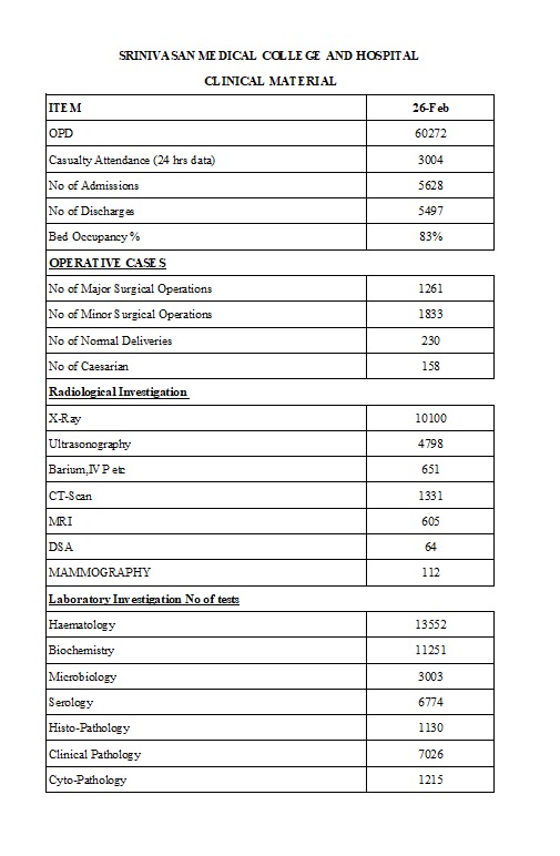 - Details of any CME programmes, conferences and/or any academic activities conducted by the institution.